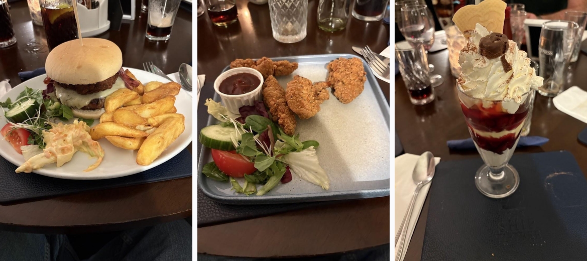 Four of us had a fantastic meal. Two had pie and veg, one had battered fish, and one, chicken melt I think. All portions were very generous, fresh veg, the fish was huge, and was served quickly. Really nice atmosphere, cosy. Dessert of toffee pecan roulade was delicious. Definitely returning.